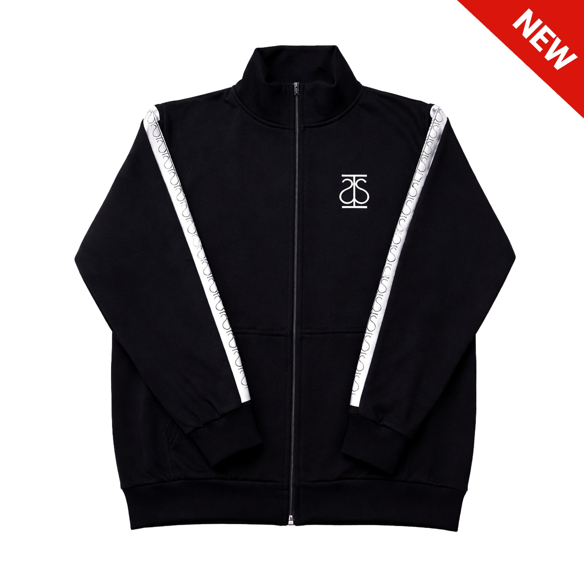 Μαύρο Full-Zip Sweatshirt "ΤΡΑΠSIΩN" με το logo σε στάμπα στο αριστερό μέρος του στήθους και με λευκές λωρίδες στα μανίκια με επαναλαμβανόμενο το logo.